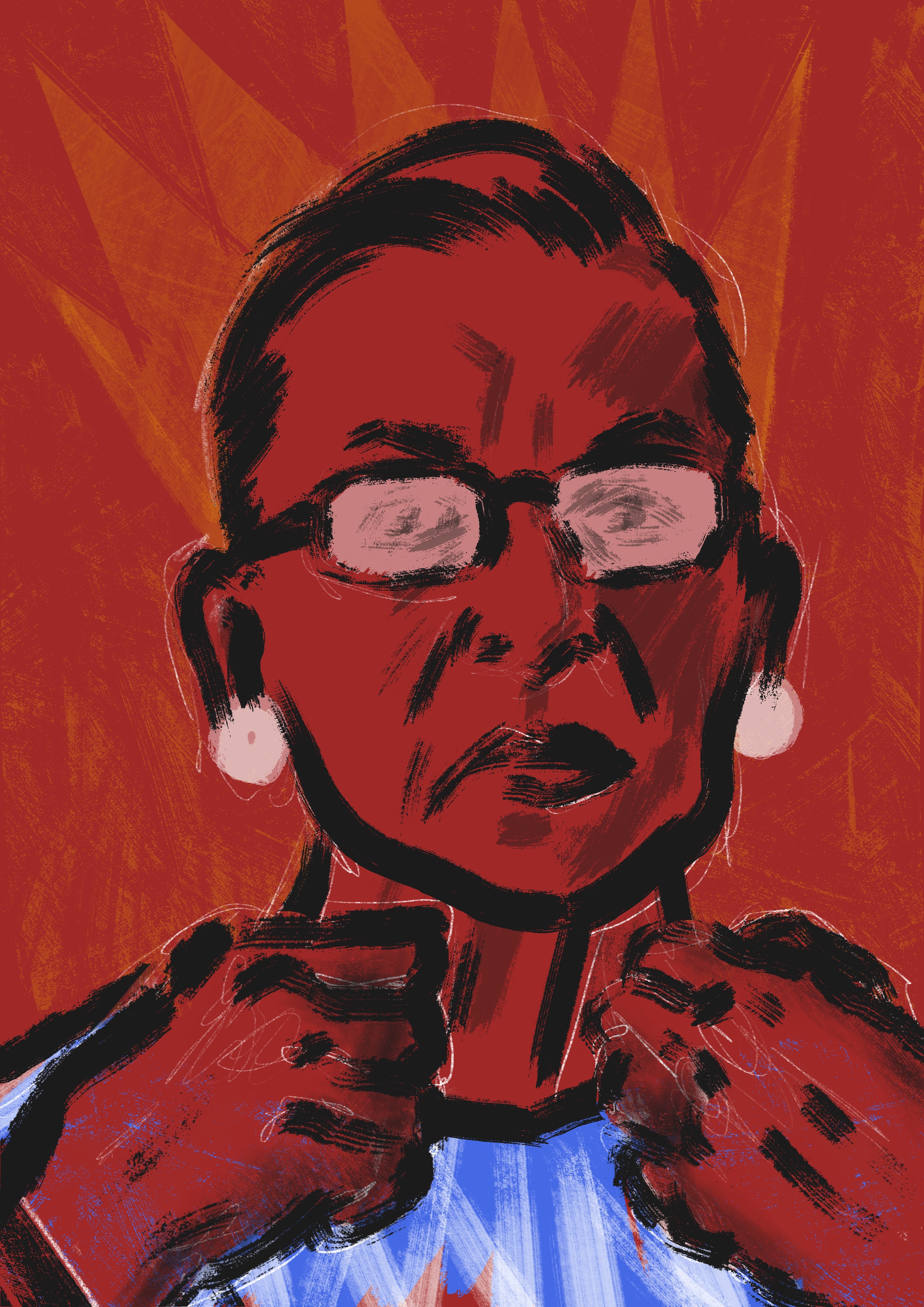 Illustrator Pirmin Rengers maakte dit prachtige portret ter ere van Ruth Bader Ginsburg, de Amerikaanse opperrechter die afgelopen vrijdag overleed.
