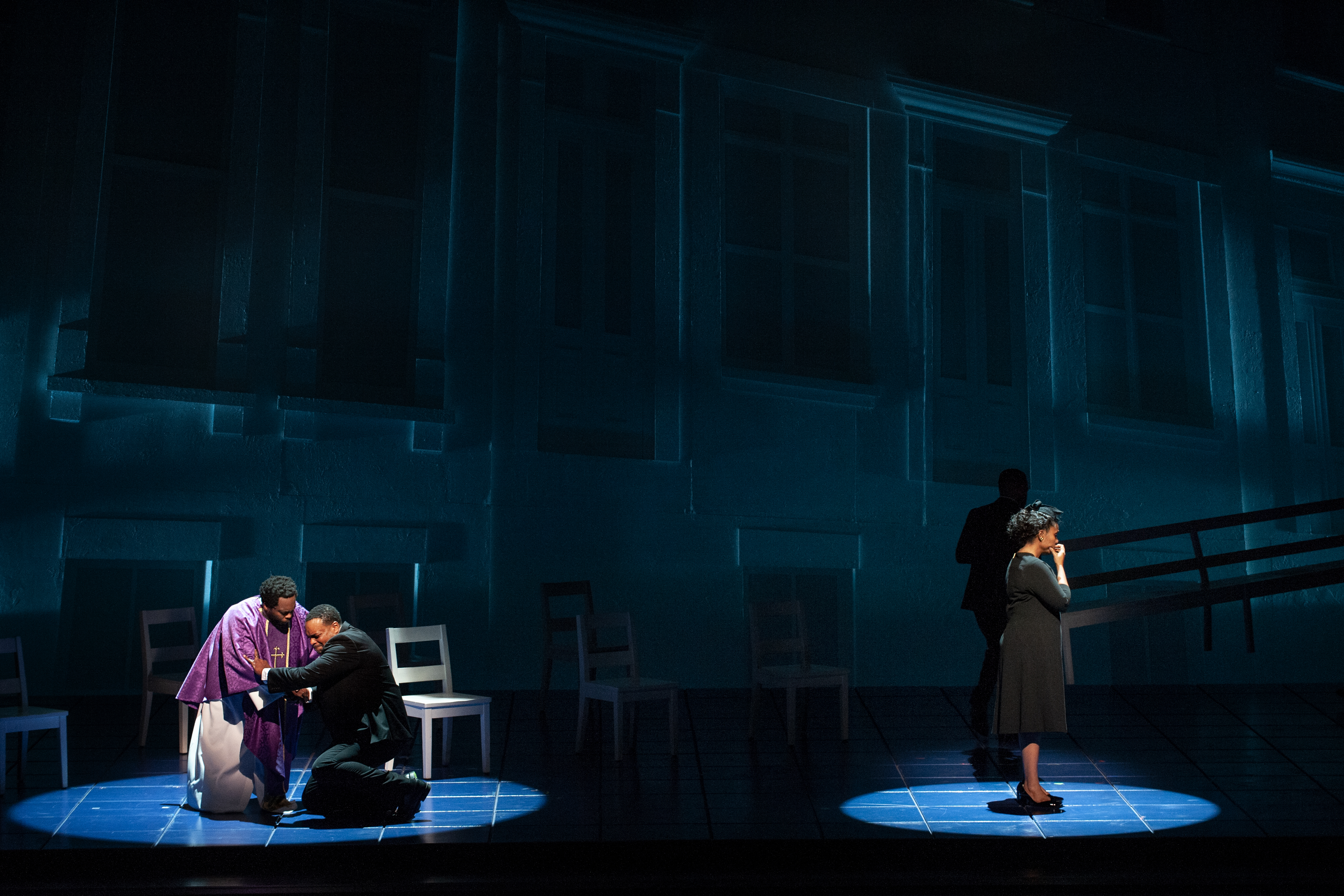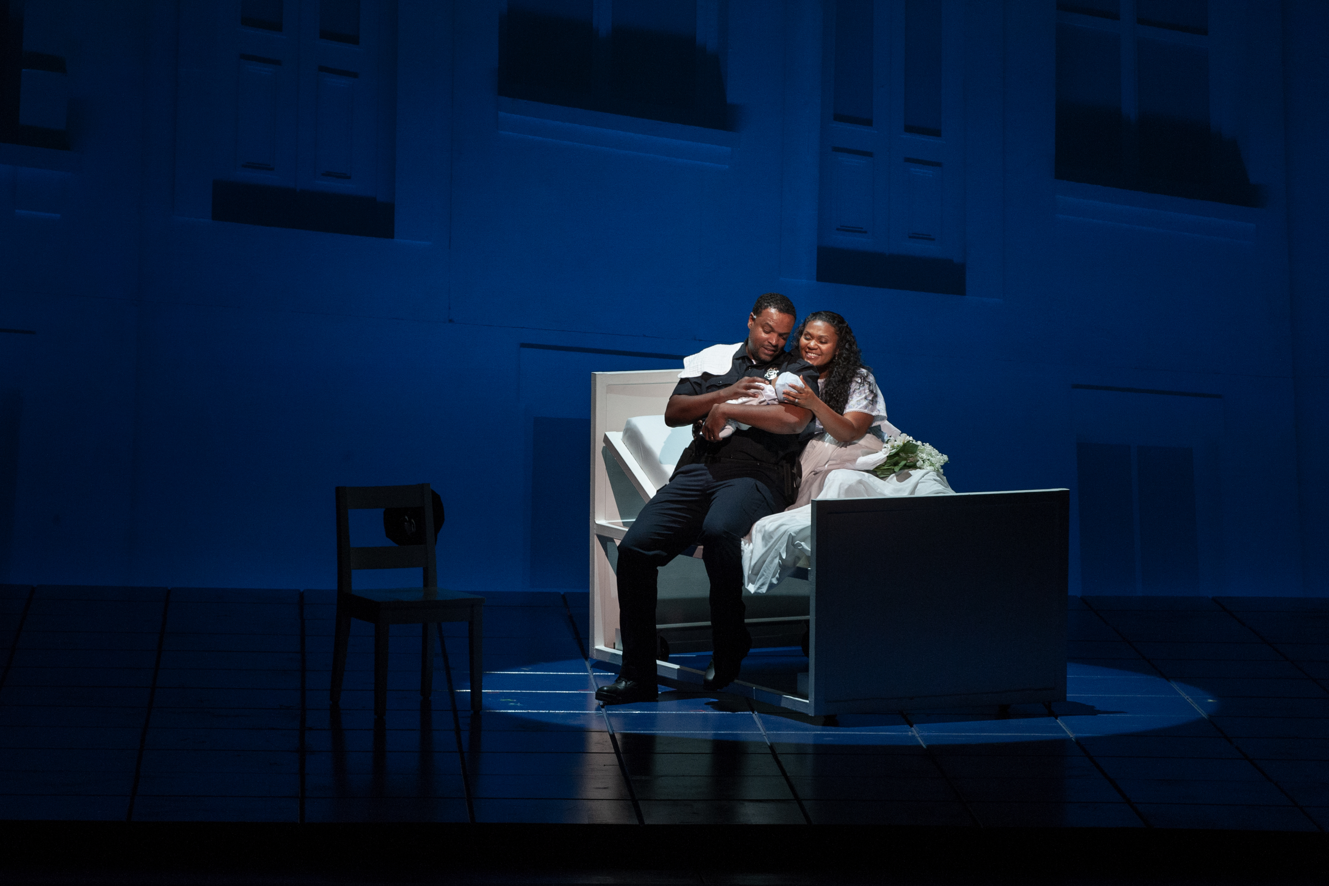 Het is jammer dat die desillusie, en dat loyaliteitsconflict van de vader, juist in Blue niet erg wordt uitgewerkt. Hij hint erop dat hij de moordenaar van zijn zoon wil vermoorden, dat hij van zijn geloof af is, maar dit verhaal wordt niet afgemaakt. De individuele personages smelten in de tweede akte samen en worden één gemeenschap die rouwt, de vriendinnen van de moeder zingen: ‘We lost a son.’ Wat Blue dus wel doet: het bezingt diep-, diepgevoelde zwarte pijn. Alle zangers, het Residentie Orkest en de dirigent doen dat prachtig en doorleefd. In de eindscène komt ten slotte alleen een flashback naar hoe het had kúnnen gaan (onschuldig samen aan tafel): geen verlossing, geen deus ex machina. Dat zijn we als publiek niet gewend, maar het toont het onaffe van dit verhaal over politiegeweld: de wond is nog niet klaar om te helen, dit verhaal is niet klaar voor een ‘mooi einde’.
