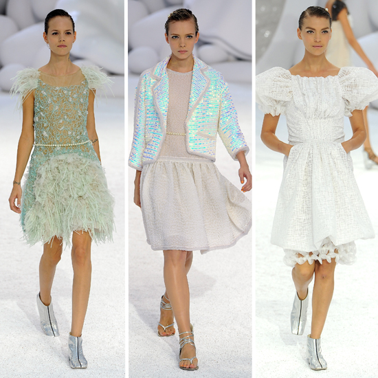 Hoewel een martelwerktuig als het korset gelukkig in de allerdiepste krocht van de modegeschiedenis is verdwenen, maken bepaalde elementen uit de ‘laagjesmode’ regelmatig een comeback. Dit seizoen waren er op de internationale catwalks veel romantische prinsessenjurkjes in onderjurkstijl te zien, met kant, broderiën en tule (Dior, Vuitton, Chanel), met wit als één van de hoofdkleuren. Valentino toonde lange, opengewerkte jurken met veel kant en geappliceerde bloemen, en de modellen in McQueen’s romantische voorjaarsshow werden door Vogue ‘sumptuous sea nymphs’ genoemd. Stella McCartney introduceerde pyjama-achtige looks: lange, rechte broeken van luxe materialen als zijde en satijn, met simpele shirtjes en jasjes. Het zijn allemaal haute couture-varianten op de onderkleding van weleer, aangepast op de eisen van 2012.