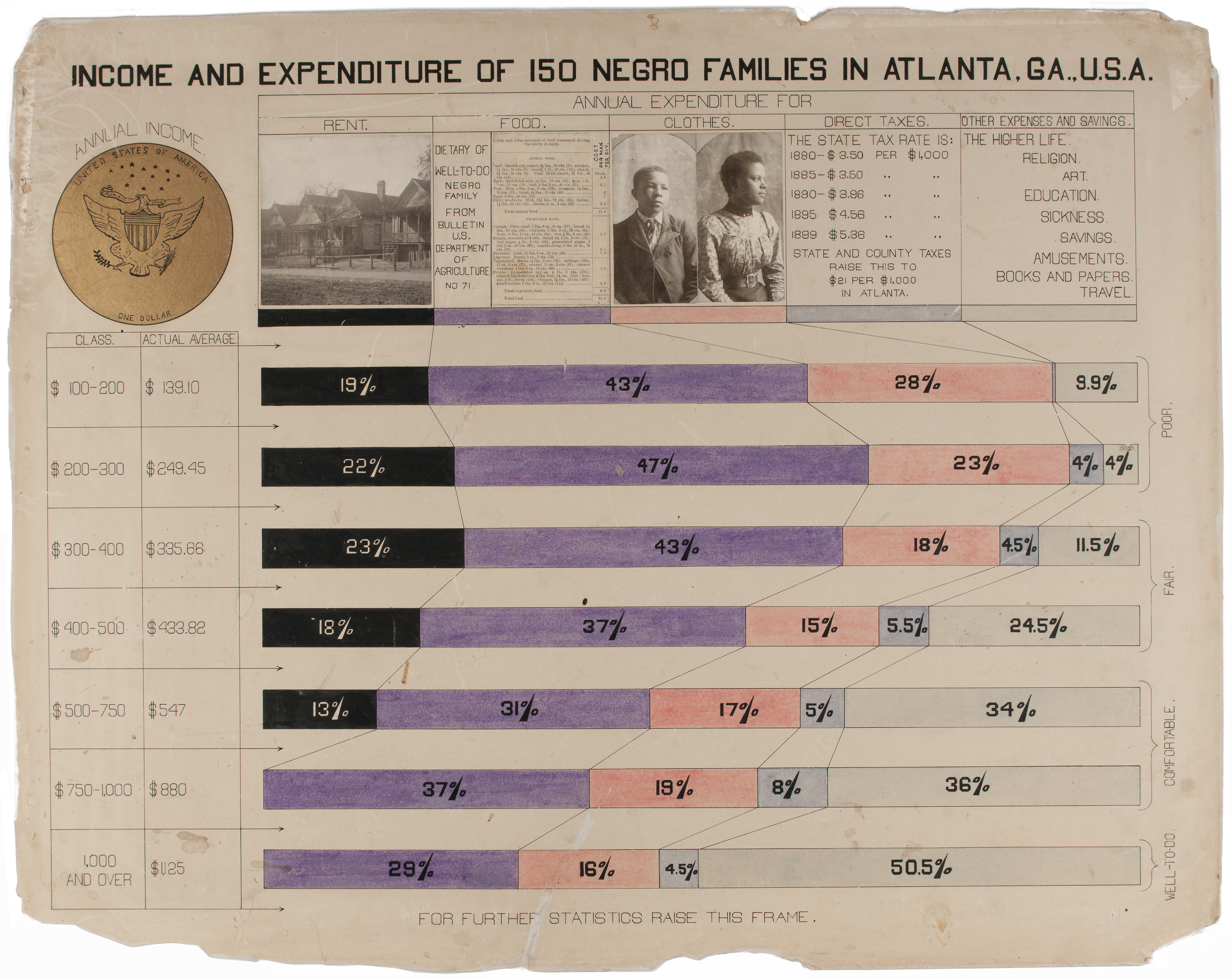 Ruim een eeuw nadat ze voor het eerst werden getoond, hebben de beelden nog altijd grote zeggingskracht. Sommige infographics zijn dan ook wereldberoemd en van grote maatschappelijke betekenis, zoals het zwarte vlak dat het aantal tot slaaf gemaakte Afro-Amerikanen toont dat veel groter is dan het groene deel dat de vrije Zwarte bevolking vertegenwoordigd. Ook zijn er grafieken te zien over educatie, alfabetisme, (soorten) arbeid en werk, grondbezit en populatie.